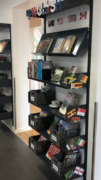 We also had some books in English different places at the school. Some of them are categorised as the ones from Step into English, so that is easier for the students to pick the right book for them. The most difficult ones are not categorised.